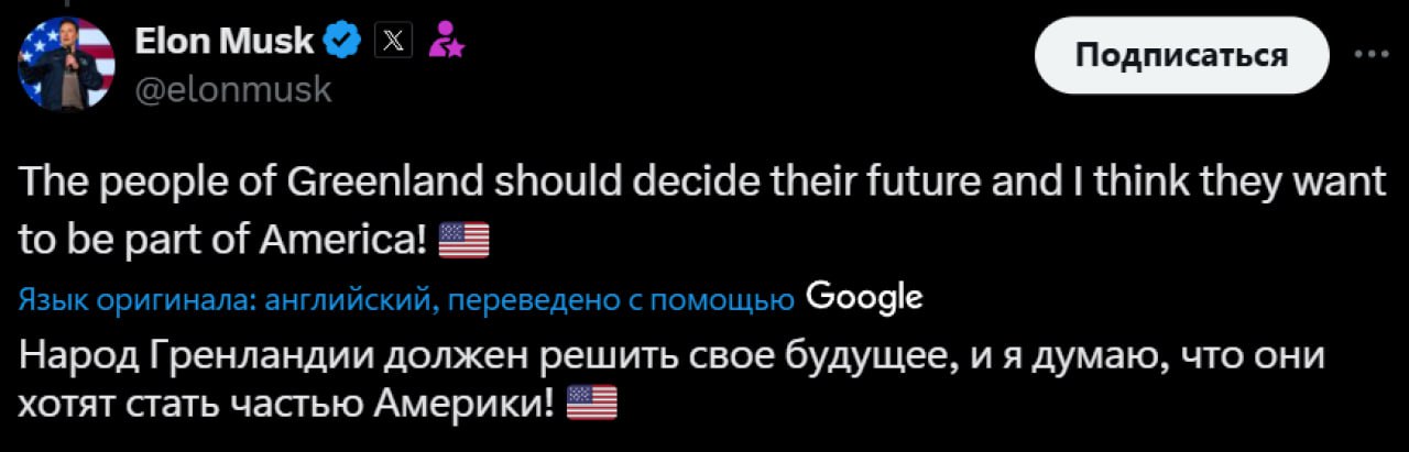 «Народ Гренландии должен сам определить своё будущее, и я думаю, что он хочет быть частью Америки!»