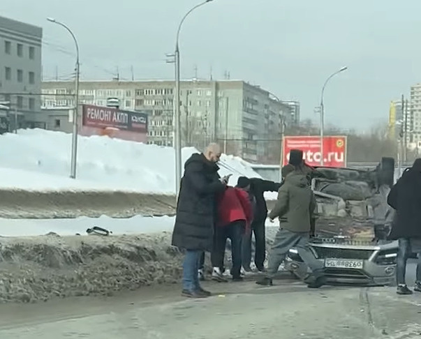 Днем 3 марта на правом берегу Новосибирска произошло ДТП. На участке дороги перевернулась машина.