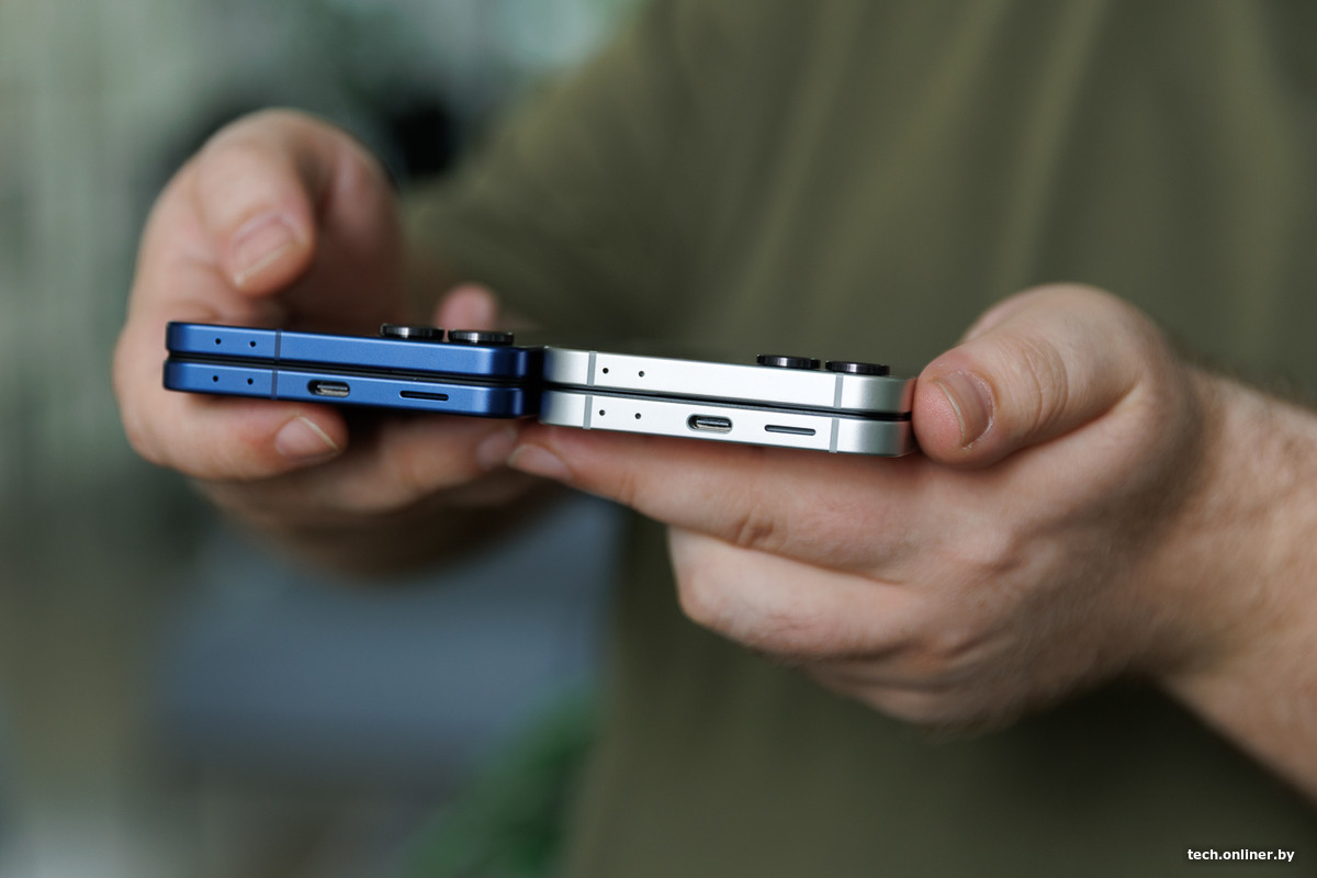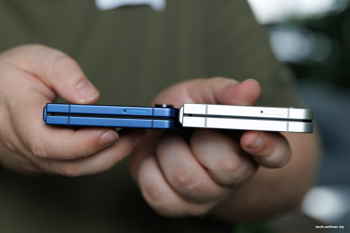 Что это означает на практике? У «ФЕ» и «шестерки», судя по всему, одинаковые корпуса — по крайней мере, по габаритам они повторяются до миллиметра. В разложенном состоянии толщина смартфонов — 6,9 мм, в сложенном — 14,9 мм.