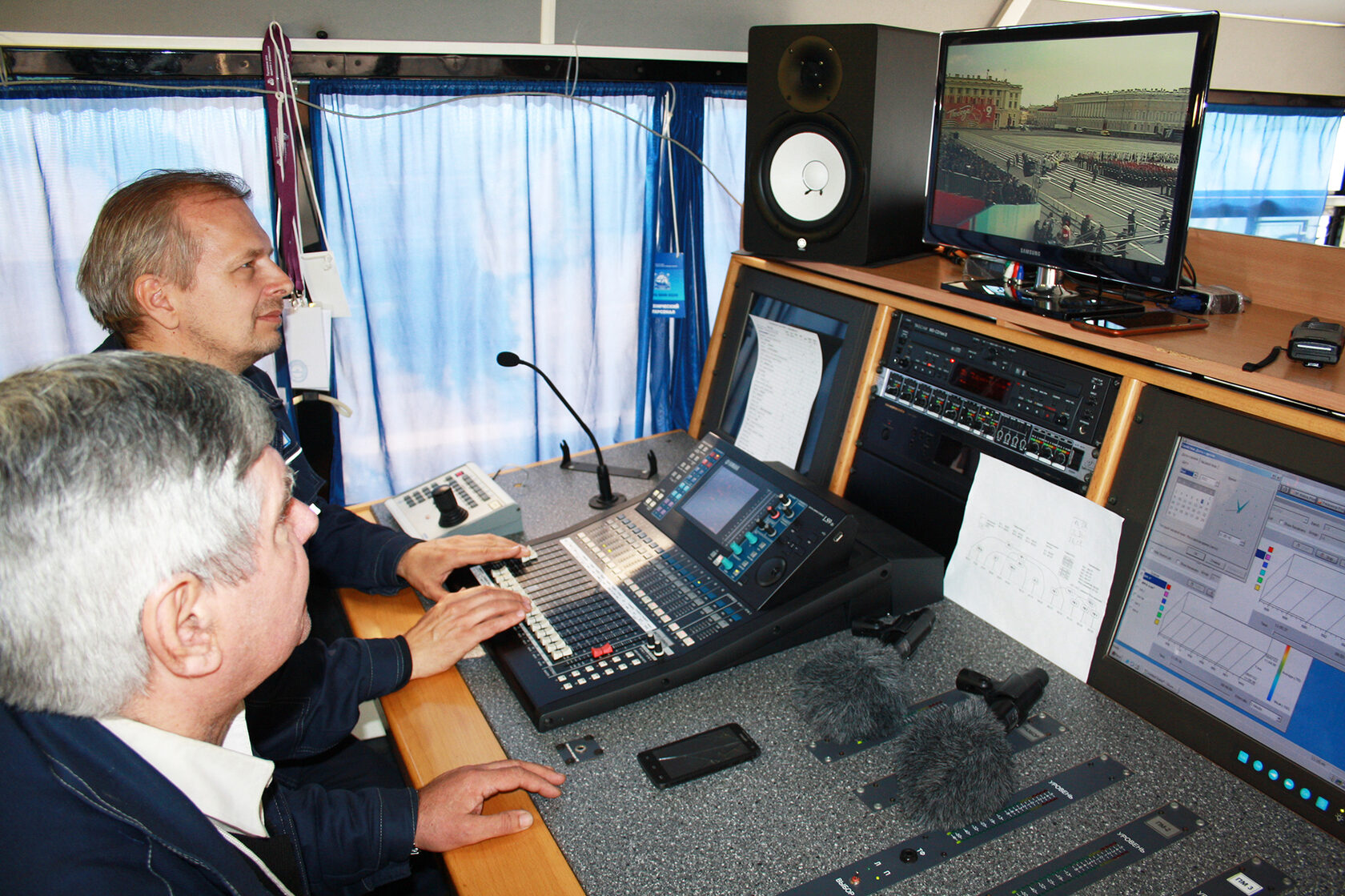 Здесь — своя специфика «озвучки». Необходимо обеспечить устойчивый прием сигнала с микрофонов парадного катера по всему маршруту следования, несмотря на большие расстояния и «паразитные» помехи от основного радиосигнала, отраженного от стальных бортов кораблей.