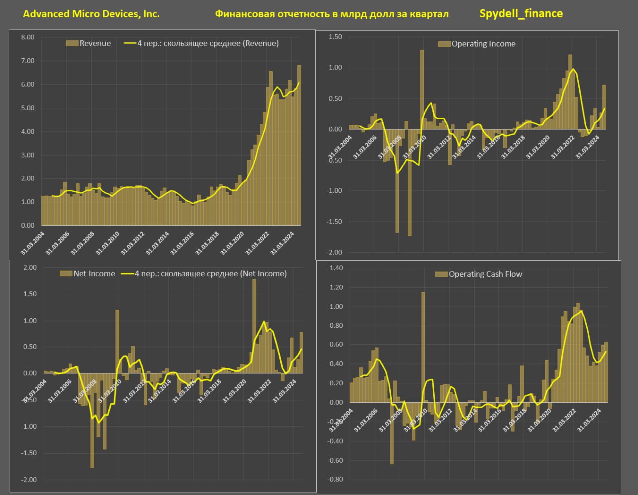 🔘Выручка AMD достигла рекордного показателя 6.82 млрд в 3кв24, увеличившись на 17.6% за год и +22.5% за два года, прервав более двух лет стагнации. В сравнении с 3кв19 рост на 278.6%.