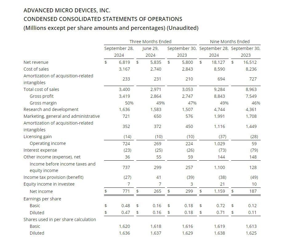В основном это обусловлено значительным ростом поставок графических процессоров AMD Instinct и ростом продаж процессоров AMD EPYC.