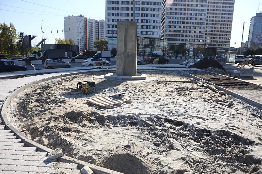 На территории проложили коммуникации, дорожки замостили плиткой, подготовили основание для скульптуры. В ближайшее время займутся облицовкой постамента.