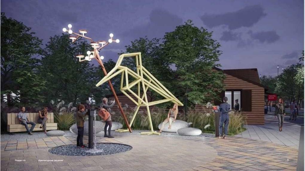 Так, на территории не появились водяная колонка, взрослые деревья и крупные камни. Символ города — птица кулик — также отличается от макета: жители отмечают, что фигура слегка покосилась, смотрит в другую сторону, а её ноги наполовину согнуты.