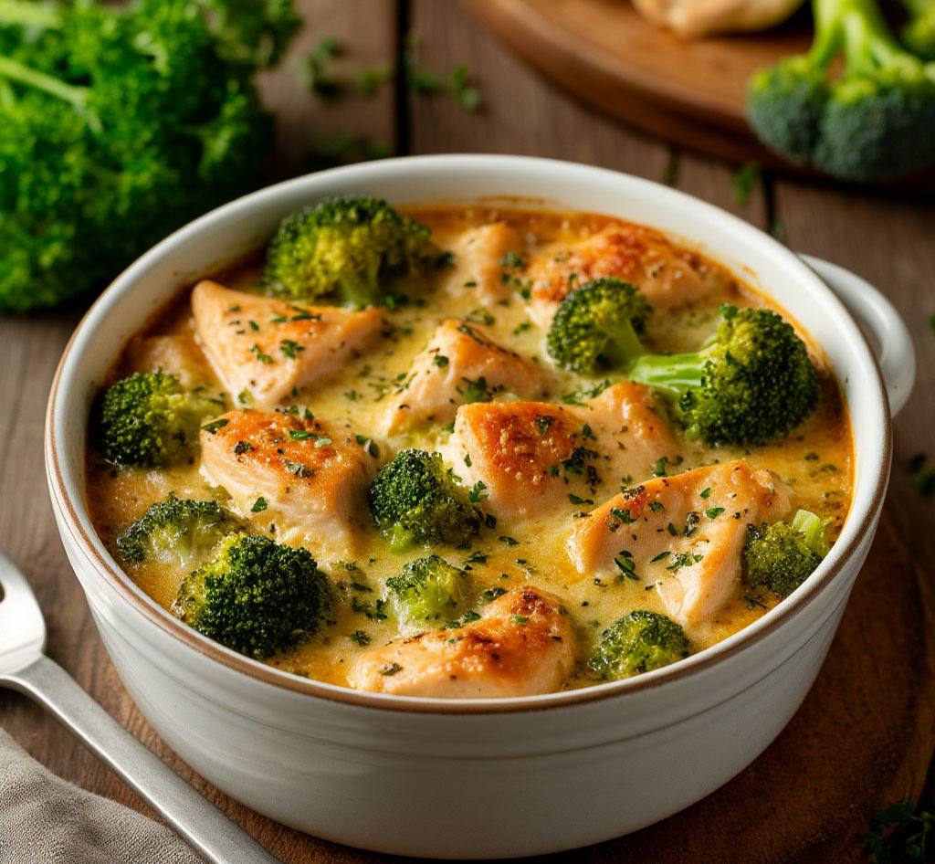4. В форму уложить слоями брокколи, курицу, сыр и зеленыий лук.
