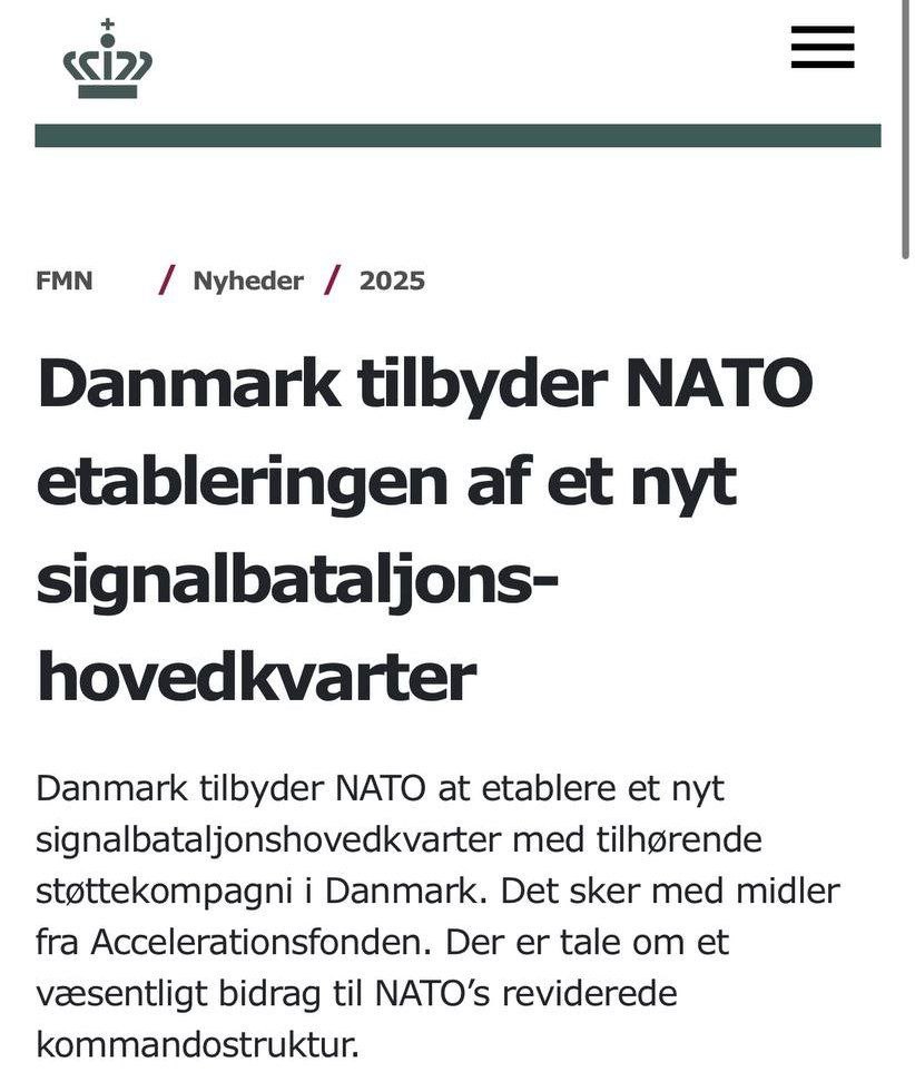 Минобороны Дании предлагает НАТО создать новый штаб батальона связи с ротой поддержки. Инициатива направлена на усиление командной структуры НАТО в северных странах и северо-западном регионе.