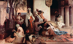 Особо стоит сказать о придворном этикете: каждая рабыня должна была знать, как наливать своему господину розовую воду, как подносить ему туфли, подавать кофе или сладости, набивать трубку или надевать халат.