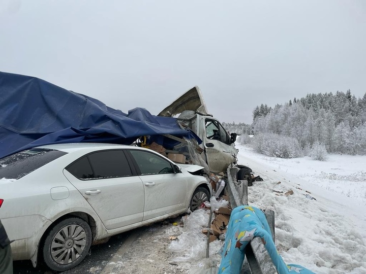 Установлено, что водитель грузового автомобиля ГАЗ выехал на встречную полосу, по которой двигался большегруз Volvo с полуприцепом. В результате столкновения ГАЗ отбросило на барьерное ограждение совей полосы, где он столкнулся с автомобилем Skoda.