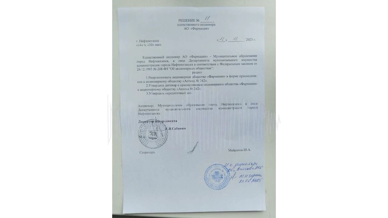 Инсайдер напомнил и о другом подозреваемом в деле — директоре депимущества Шамиле Майранове. Чиновник не успел проработать в должности и недели — вопросы силовиков к нему так же были связаны с реализацией муниципальных активов. В СИЗО на нервной почве у экс-чиновника даже открылось внутреннее кровотечение — его госпитализировали в больницу. Как указывает источник, подпись Майранова стоит в документе о присоединении АО «Фармации» к АО «Аптека №242», но только в качестве секретаря.