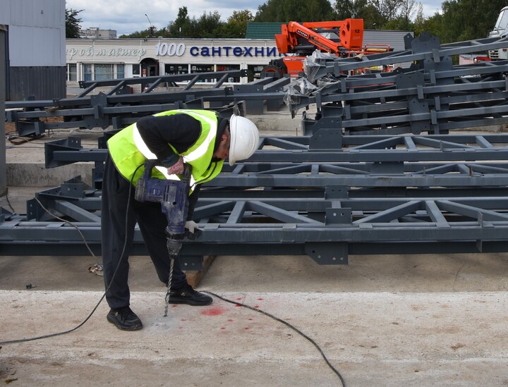 Представитель подрядной организации сообщил Алексею Смирнову, что в настоящее время рабочие определяют точки установки анкерных элементов и начинают монтаж стальных колонн. К установке металлоконструкций привлечено 10 специалистов. В дальнейшем планируется увеличение численности рабочей силы на объекте. Подрядчик намерен сначала завершить монтаж спортивной зоны бассейна, а затем перейти к административной части. По информации от подрядчика, все требуемые материалы доставлены на место строительства.