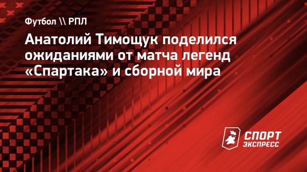 Тренер «Зенита» Анатолий Тимощук поделился с «СЭ» ожиданиями от матча легенд «Спартака» и сборной мира.