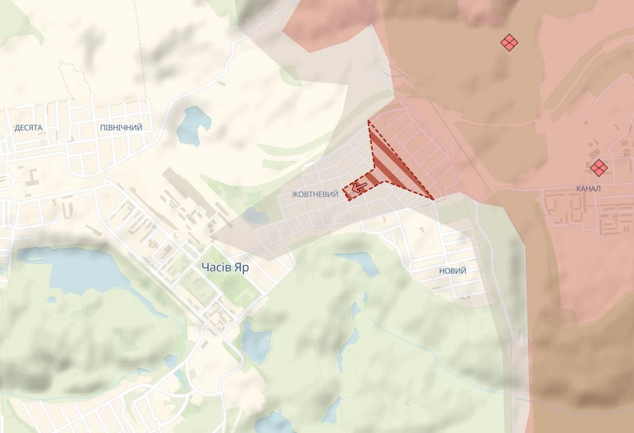 Карта Deep State подтверждает, что РФ продвинулась в микрорайоне Жовтневый со стороны канала и сумела закрепиться. А серая зона достигает почти центра города.