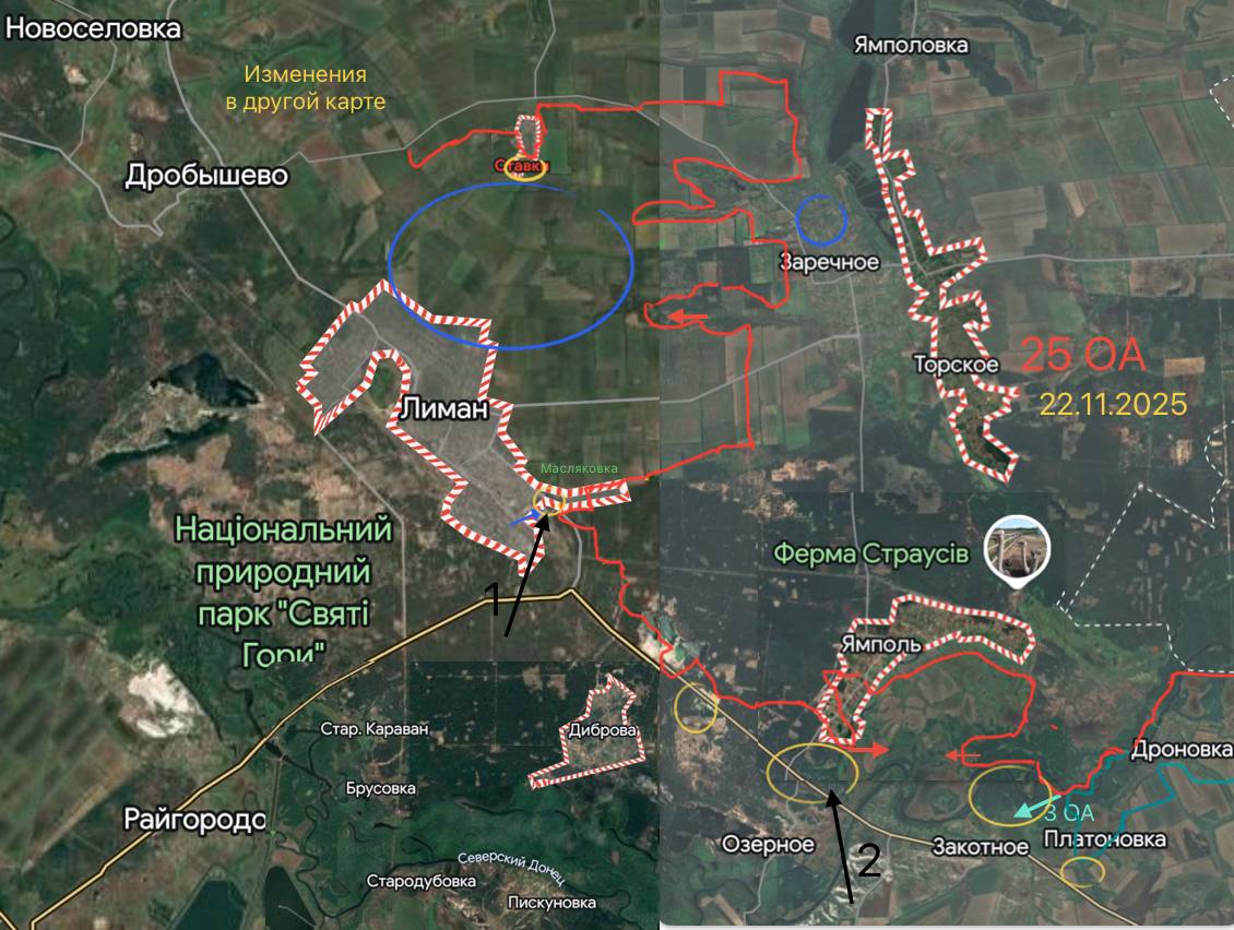 1. Противник проводил атаки у перекрестка (стела Красный Лиман) в сторону Масляковки. Атаки были отбиты