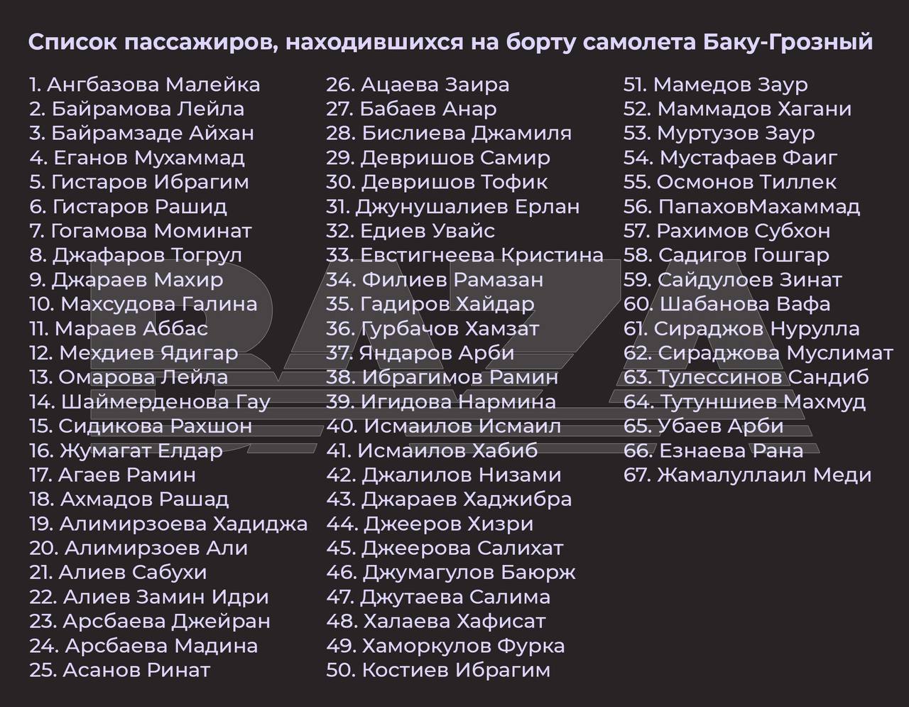 Bazaгод назадВидео по теме ФОТО Полный список пассажиров, находившихся на борту самолета Баку - Грозный, потерпевшего крушение в Казахстане.❗ Подписывайтесь, это Baza Информация на этой странице взята из источника: https://t.me/bazabazon/33931Темы и тегиКазахстанПроисшествия и КатастрофыAzerbaijan Airlines самолет крушение борт падение МЧС крушение самолет пассажирский