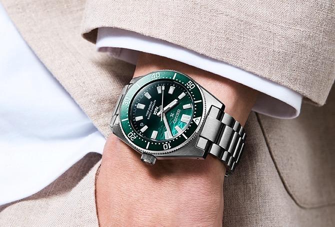 Chacune de ces deux créations horlogères japonaises arbore un cadran et une lunette rotative unidirectionnelle vert émeraude du plus bel effet au poignet. La Prospex 1965 Heritage est inspirée de la toute première montre de plongée Seiko lancée en 1965, la 62MAS. Accompagnée d’un bracelet tissé à partir de filets de pêche recyclés, étanche jusqu’à 300 mètres, cette monte de plongée de 40 mm de diamètre est équipée du calibre 6R55 proposant 72 heures de réserve de marche.