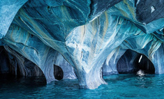 Мраморные пещеры, также известные как Мраморные соборы, являются кальциевыми образованиями, появившимися более 6000 лет назад в результате эрозии на ледниковом озере Хенераль-Каррера в Патагонии. Озеро разделено между Чили и Аргентиной (здесь оно называется озером Буэнос-Айрес) и питается водами, сходящими с вершин Анд. Талая вода размывает каменистые острова, образуя под ними уникальные пещеры.