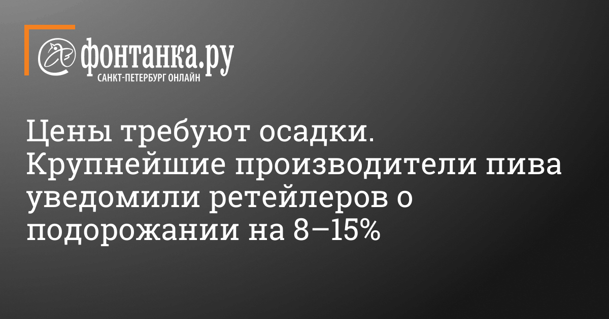 Крупнейшие производители пива и безалкогольных напитков предупредили ретейлеров о предстоящем подорожании своей продукции, следует из писем компаний, имеющихся в распоряжении «Фонтанки». Их получение подтвердили несколько федеральных и региональных сетей.
