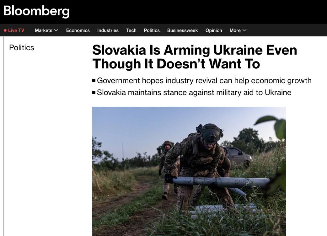 🐱 Словакия продолжает вооружать Украину, несмотря на пророссийские настроения правительства — Bloomberg