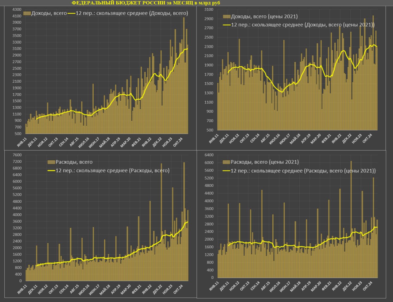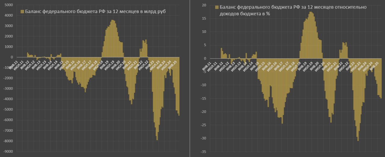 По скользящей сумме за 12м максимальный дефицит за всю историю был в мае 2023 на уровне 7.9 трлн, а текущий дефицит за 12м является вторым худшим за все время.