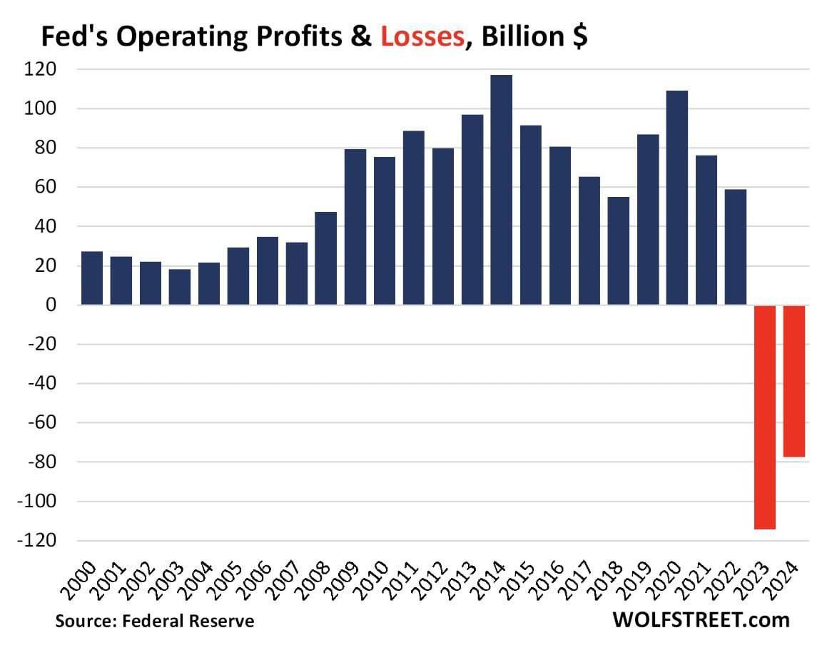 Федеральная резервная система США получила в общей сложности 192 млрд долл. убытков за последние два года