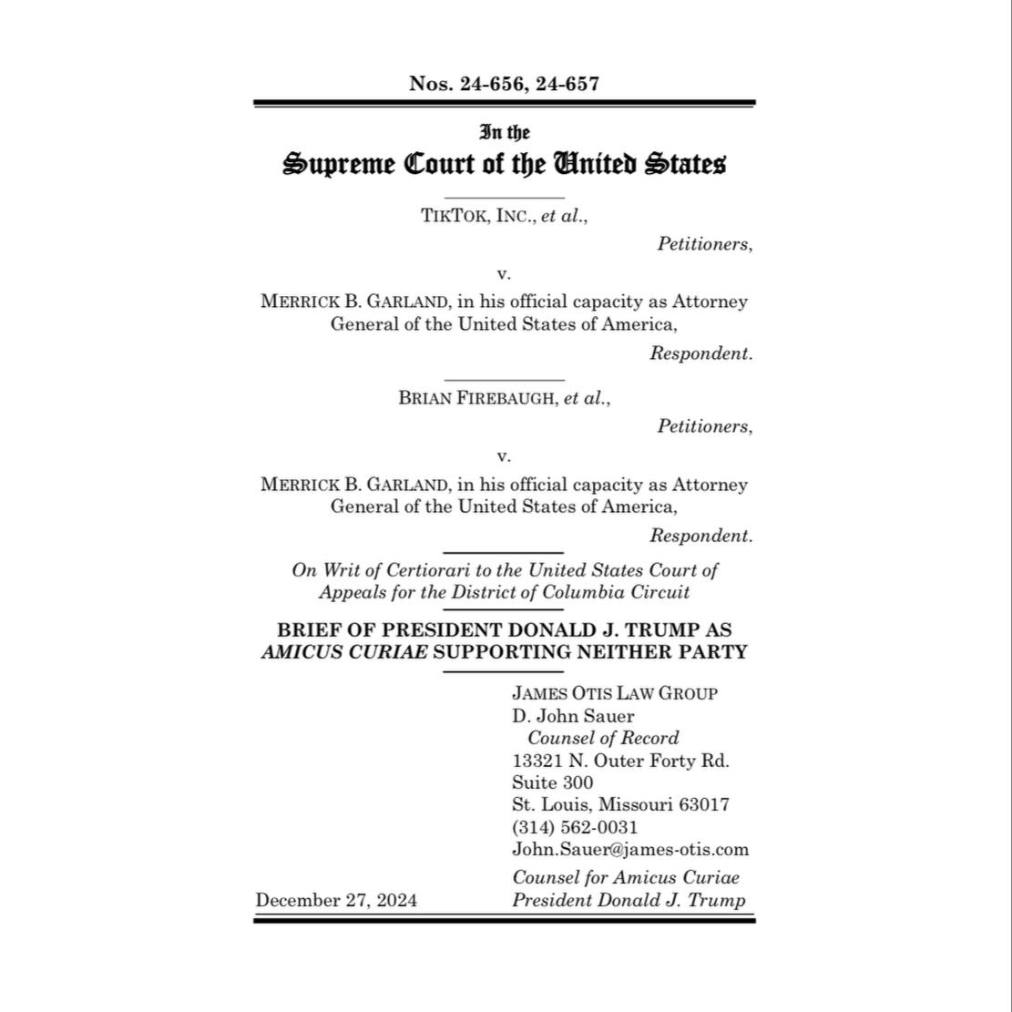 ⚡️Дональд Трамп обратился в Верховный суд США с просьбой разрешить ему заключить сделку, чтобы спасти TikTok от потенциального запрета в США.
