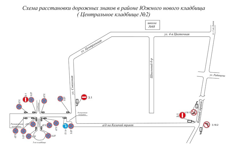 Отмечается, что на территории кладбищ будет установлены предупреждающие дорожные знаки.