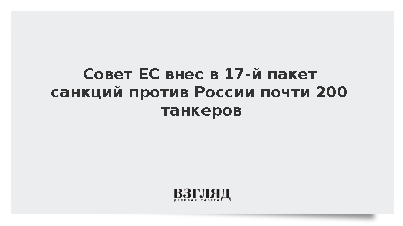 Совет ЕС одобрил новый, 17-й по счету, пакет санкций против России. Глава дипломатии Евросоюза Кая Каллас заявила, что в обновленный черный список были внесены почти 200 танкеров, передает ТАСС.