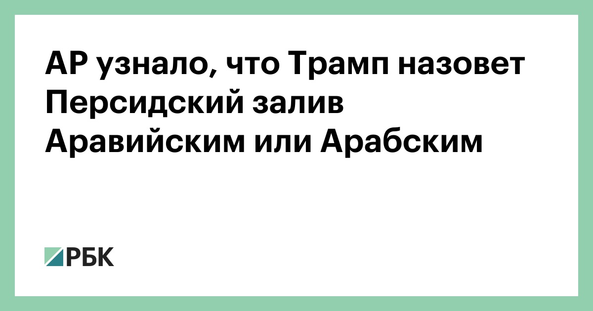 США будут называть Персидский залив Аравийским или Арабским, об этом объявит президент Дональд Трамп, сообщило The Associated Press со ссылкой на двух американских чиновников.