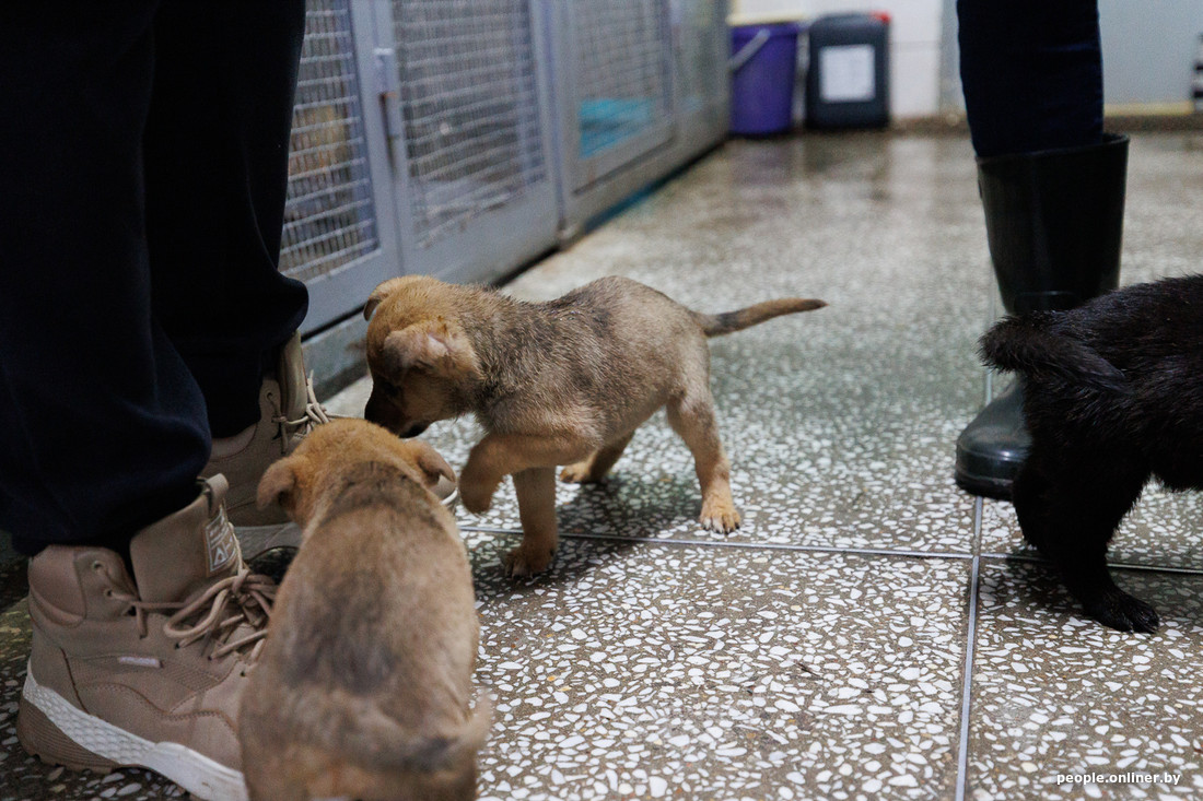 — Если этих щенков не разберут, то они, как только подрастут, отправятся в вольеры, где живут взрослые собаки. Там от трех до пяти животных в одной клетке, — рассказывает Татьяна, закрывая дверцу. — Сейчас щенков от населения мы не принимаем: нет мест. Вот эти — из отлова, их привозят к нам, мы подержим и раздадим. Да, таких «обычных» люди тоже берут, но снова-таки по сезону. Сейчас, если заберут одного-двух в день, уже хорошо. А ведь в Минске живет 2 млн человек!
