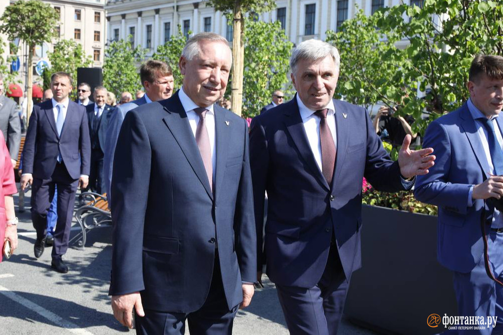 Утром 27 мая Дмитрий Медведев, Валентина Матвиенко и Александр Беглов возложили цветы к памятнику Петра Первого. Затем, пройдя через липовый сад у Мариинского дворца, оказались в Законодательном собрании, где вручили награды новым почетным жителям Петербурга. После торжественной части был банкет — на столах во внутреннем дворе расставили деликатесы, черную и красную икру. Однако именно в этом мероприятии Медведев и Беглов участия не приняли — в их программе стояла встреча в партии «Единая Россия».