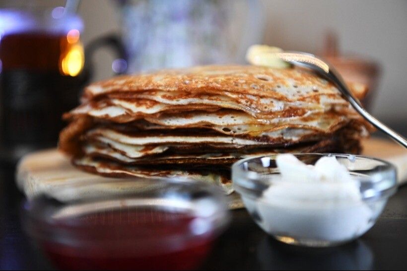 Такого количества ингредиентов хватает на 15-20 блинов.