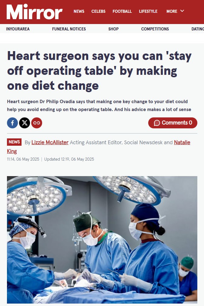 Кардиохирург Филипп Овадия изучил существующие диеты для поддержания здоровья сердца и выяснил, что их объединяет одно главное правило – отказ от ультрапереработанных продуктов (чипсы, колбасы, сладости, снеки, газировка, сухие завтраки и прочее).