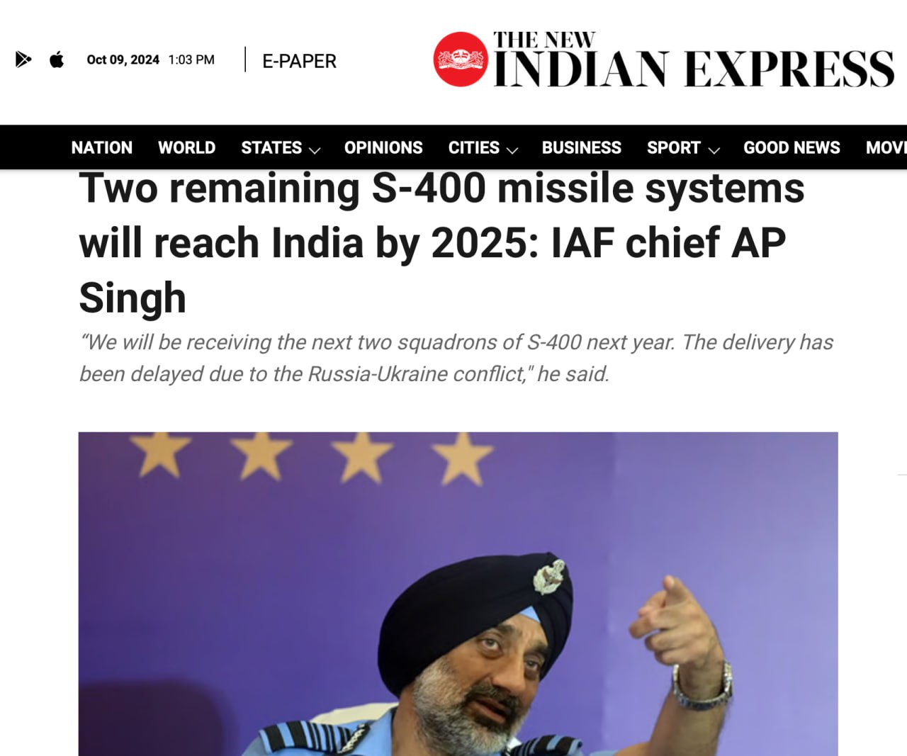 Командующий индийскими ВВС главный маршал авиации Амар Прит Сингх заверил, что сейчас Россия поставила три комплекта этой системы ПВО и "взяла на себя обязательство поставить оставшиеся две единицы к будущему году».