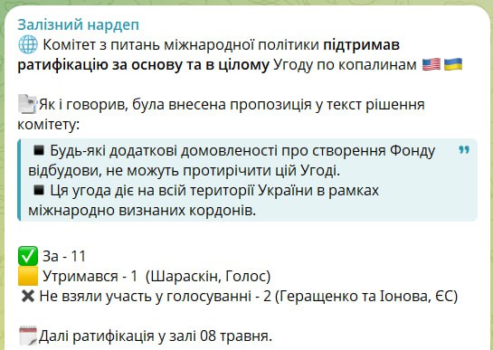 Комитет Рады поддержал ратификацию соглашения с США по недрам, — Железняк
