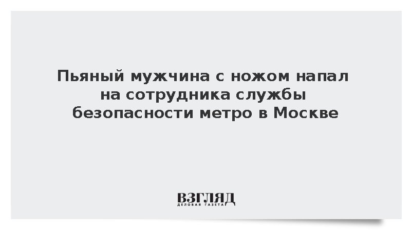 В Москве задержали пьяного мужчину, напавшего с ножом на сотрудника службы безопасности столичного метрополитена, сообщила представитель МВД Ирина Волк.