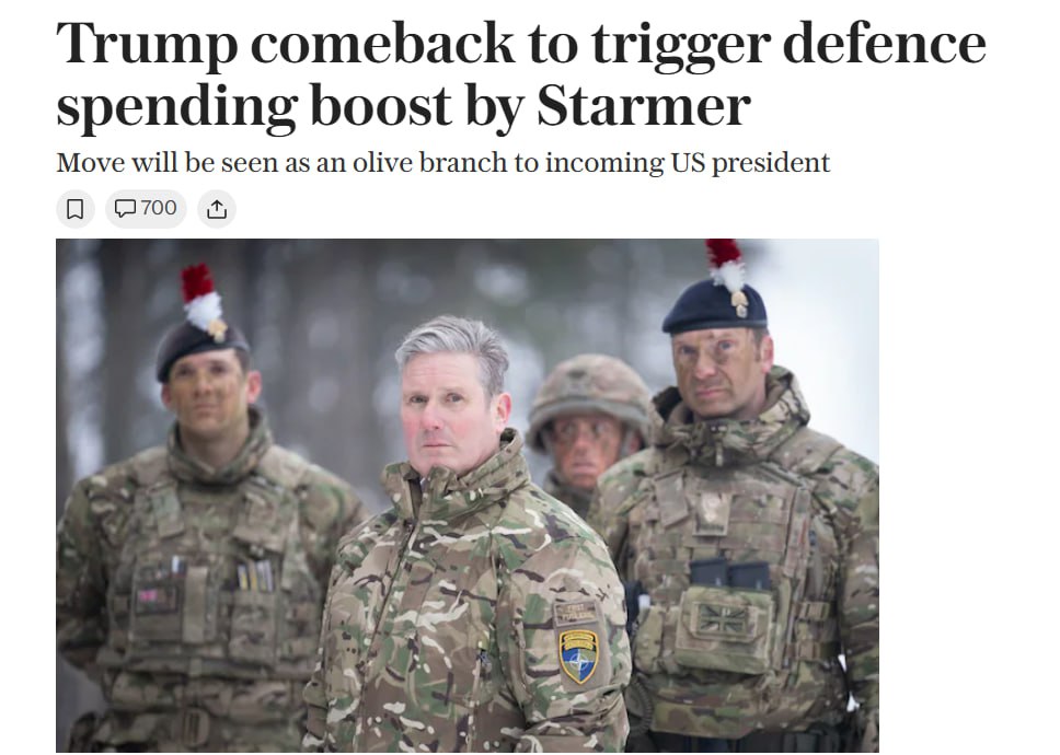 Чтобы улучшить отношения с Трампом, премьер Британии Стармер весной объявит о повышении трат на оборону до 2,5% ВВП, — The Telegraph со ссылкой на источники