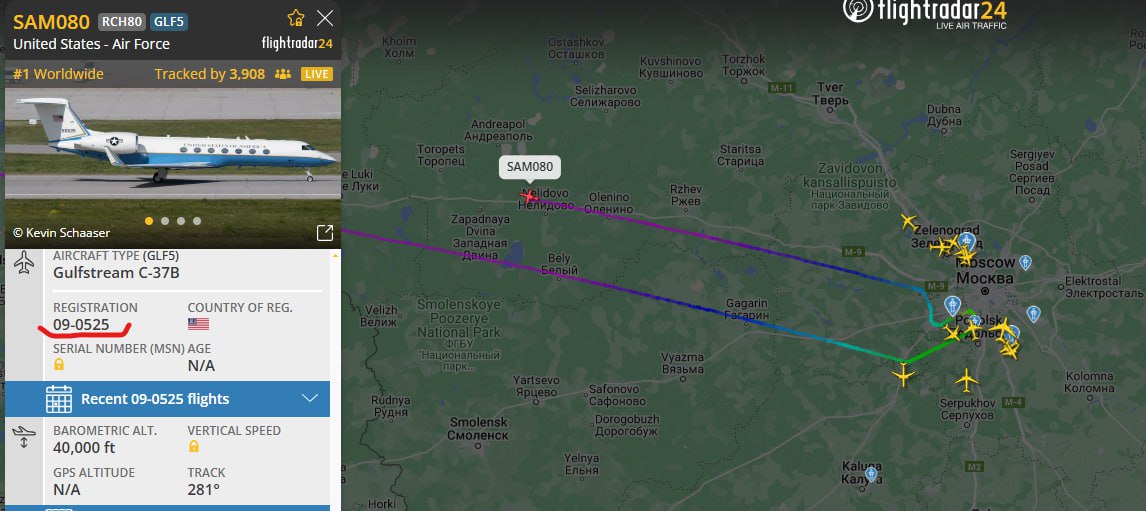 Интересное наблюдение — самолет ВВС США, который прилетал в московский аэропорт этим вечером, имеет регистрационный номер 09-0525 (09.05.25), который можно истолковать как 9 мая 2025 года — День Победы
