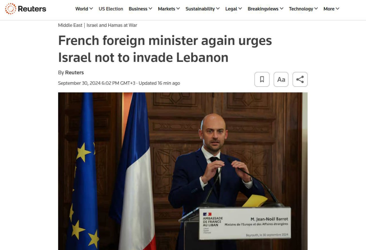 🇫🇷🇮🇷 Франция заявляет об усилении поддержки армии Ливана — Reuters