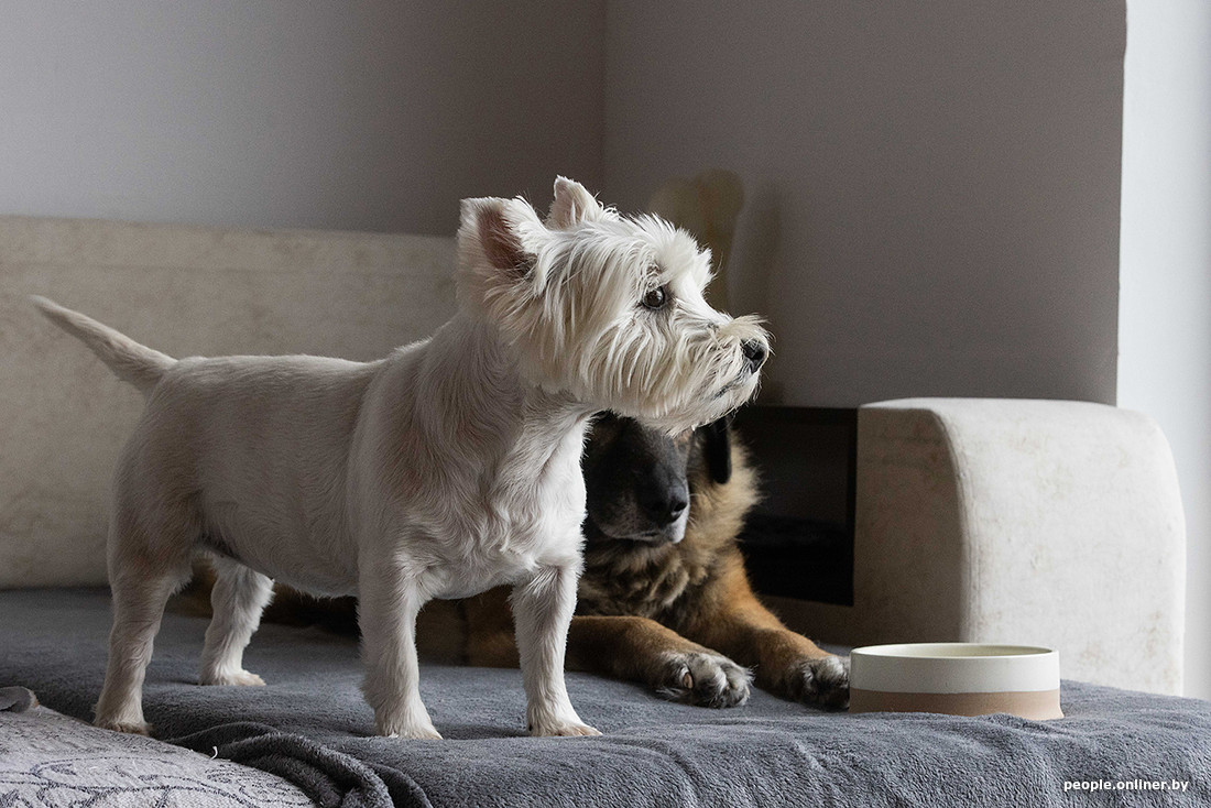 Просторный дом Кристина купила два года назад. Говорит, что пришлось постараться, чтобы найти такой. Ведь здесь должно быть комфортно не только ей, но и животным. Одни приезжают сюда временно и тусуются в зоогостинице, пока хозяин в отпуске, другие — на реабилитации после травм или болезней. Мы знакомимся с каждым псом — нас обнюхивают, почти все дают себя погладить. Спустя минут 10 стихает и лай. Кажется, нас приняли и мы можем общаться. Устраиваемся на мягком ковре прямо на полу. На колени запрыгивает хозяйская кошка, а собаки разлеглись по кругу и тихонько посапывают или поглядывают на незнакомок, которые зачем-то ворвались в их мир стабильности.