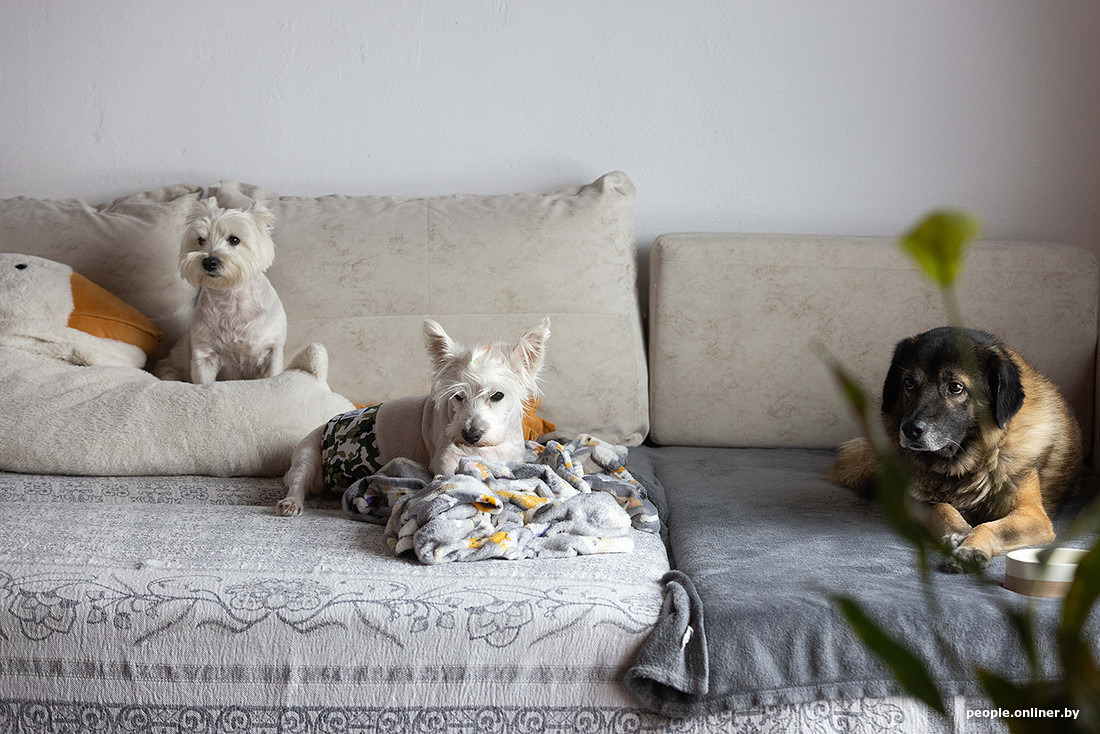 — Каждый мой день мы начинаем с прогулок. Если собака может ходить, то идем на улицу. Если есть проблемы, я помогаю им с туалетом. Дальше по расписанию еда и прием лекарств. А потом я занимаюсь уборкой: стирка, мытье полов — это приходится делать каждый день. После этого нужно делать упражнения, с животными помоложе играем — для них это тоже важно. Так, тихо! — Кристина в секунду усмиряет лай, который поднимается из-за передвижений фотографа. — Можем выйти на улицу, но у меня правило: в каждой руке по поводку. Иногда с кем-то гуляю на руках. Животным важно быть за пределами дома: им нужны эмоции, разнообразие картинок и запахов.