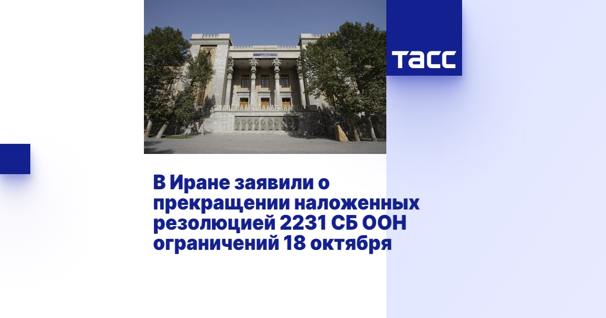 "На сегодняшний день все ограничения, наложенные на физических и юридических лиц, упомянутых в резолюции 2231, в том числе положения о заморозке иранских активов, завершают свое действие, и их список будет удален с сайта ООН, - написал Багери Кани в социальной сети X (ранее Twitter). - Также утрачивают свою силу санкции, несправедливо наложенные на импорт и экспорт баллистических ракет в и из Ирана. <...> Все национальные и региональные ограничения, введенные против исламской республики на основании резолюции 2231, также должны быть отменены. Сохранение в силе этих мер прямо нарушает положения самой резолюции".