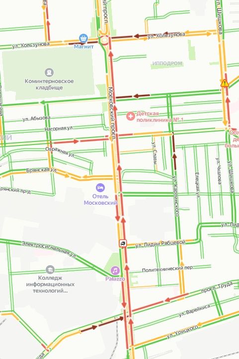 Затруднено движение и по прилегающим улицам: проспекту Труда, 45-й Стрелковой Дивизии, Беговой и Хользунова.