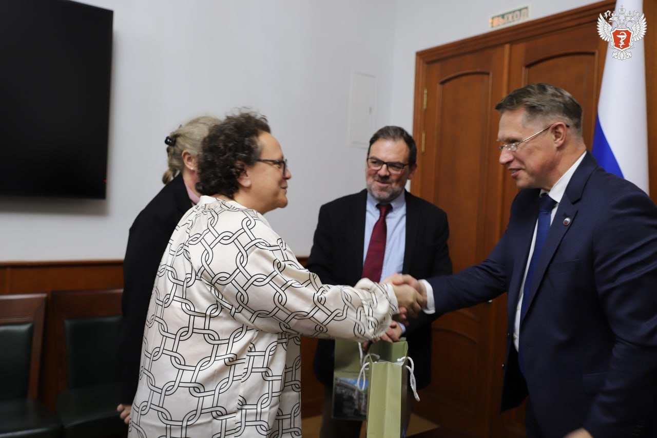 Министр здравоохранения РФ Михаил Мурашко провел встречу с делегацией Европейского консорциума по гемофилии, на которой президент организации Александрэ Фаринья де Пиньо Крато отметил успехи России в обеспечении медпомощью больных гематологическими заболеваниями.