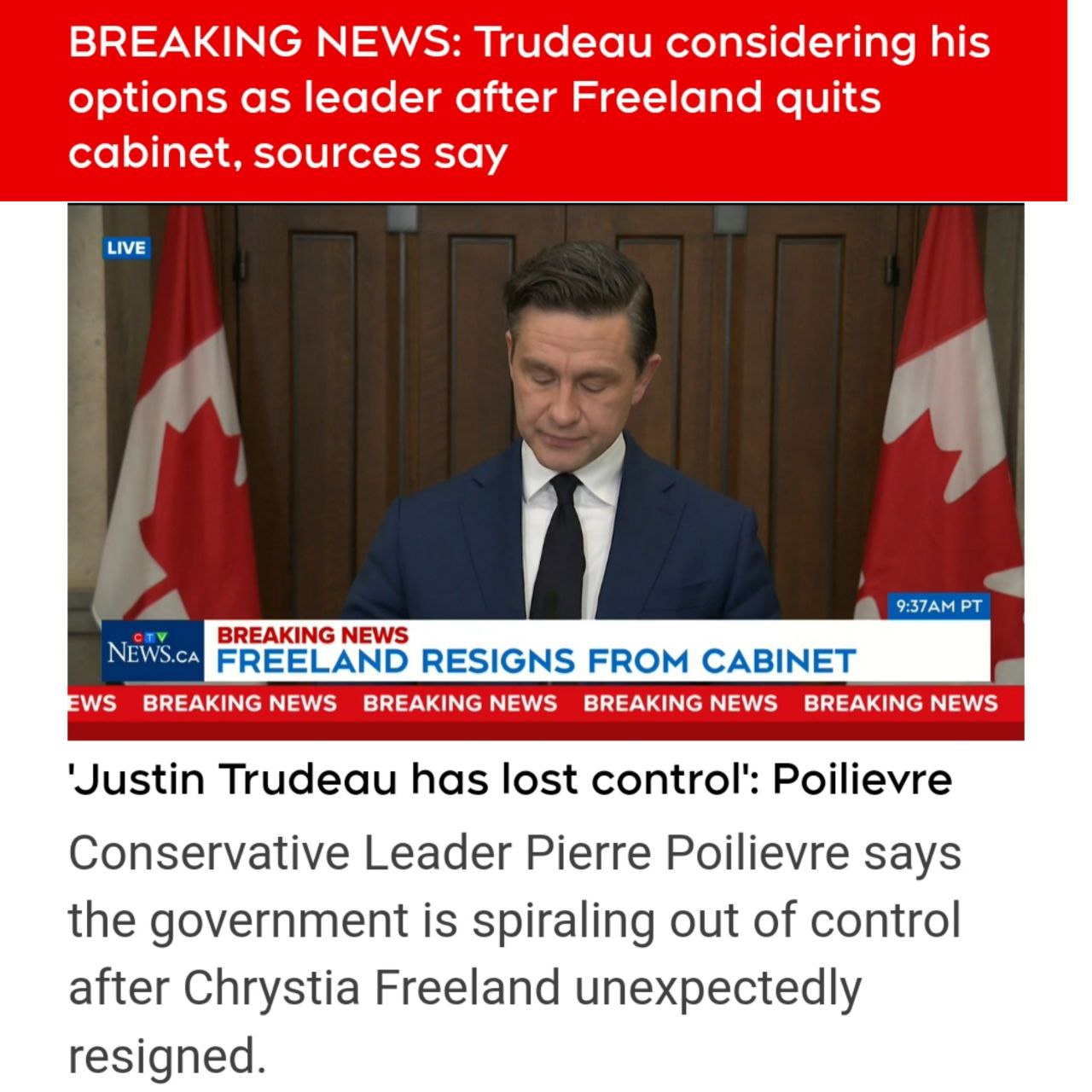 Премьер-министр Канады Джастин Трюдо может уйти в отставку после отставки министра финансов и своего зама украинского происхождения Христи Фриланд - у них начались разногласия после прихода Трампа.