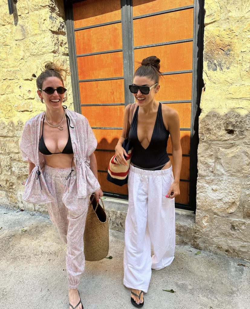 И, конечно, не забываем про стилизацию слитного конкурсанта в городских образах, ведь перед нами – отличная альтернатива топу. Помнится, несколькими днями ранее классным примером стайлинга подобного комплекта обеспечила звезда «Постучись в мою дверь» Ханде Эрчел. Объемные белые брюки, трендовая поясная цепочка и не менее актуальные вьетнамки – настоящая палочка-выручалочка при зашкаливающих показаниях термометра.