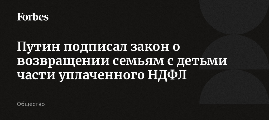 Путин подписал закон о возвращении семьям с детьми части уплаченного НДФЛ