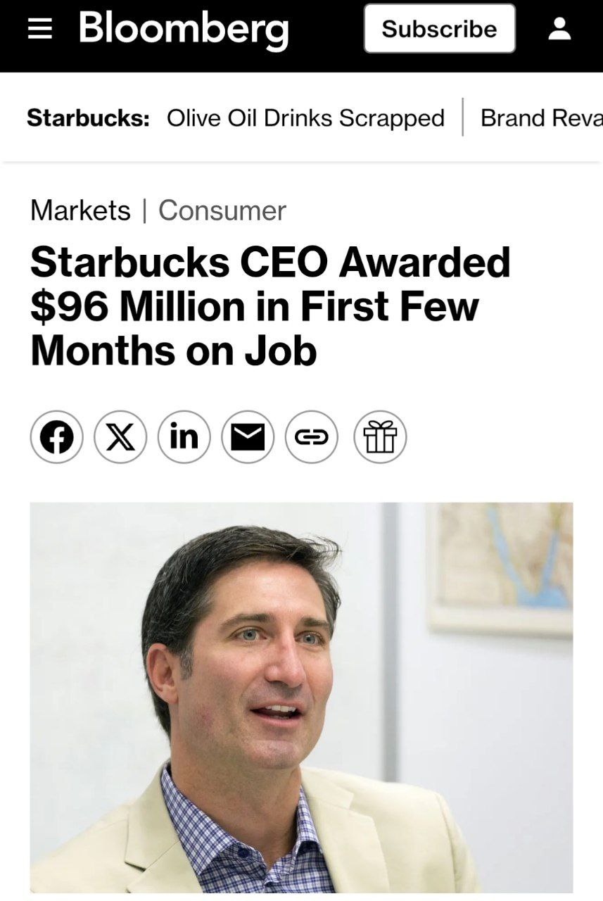 Гендиректор Starbucks Брайан Николл за первые четыре месяца работы заработал $96 млн. Это одна из крупнейших зарплат в истории США.