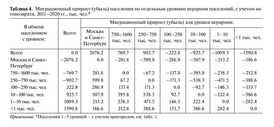 Куда переселялись россияне внутри России в 2011-2020 годах. Расчёты группы авторов из Института демографии им. А.Г. Вишневского, ВШЭ, РАНХиГС и Управления статистики населения и здравоохранения Росстата. Причём в их исследовании учтены автовозвраты, т.е. вычтены те, кто не прижился на новом месте и вернулся в место исхода.
