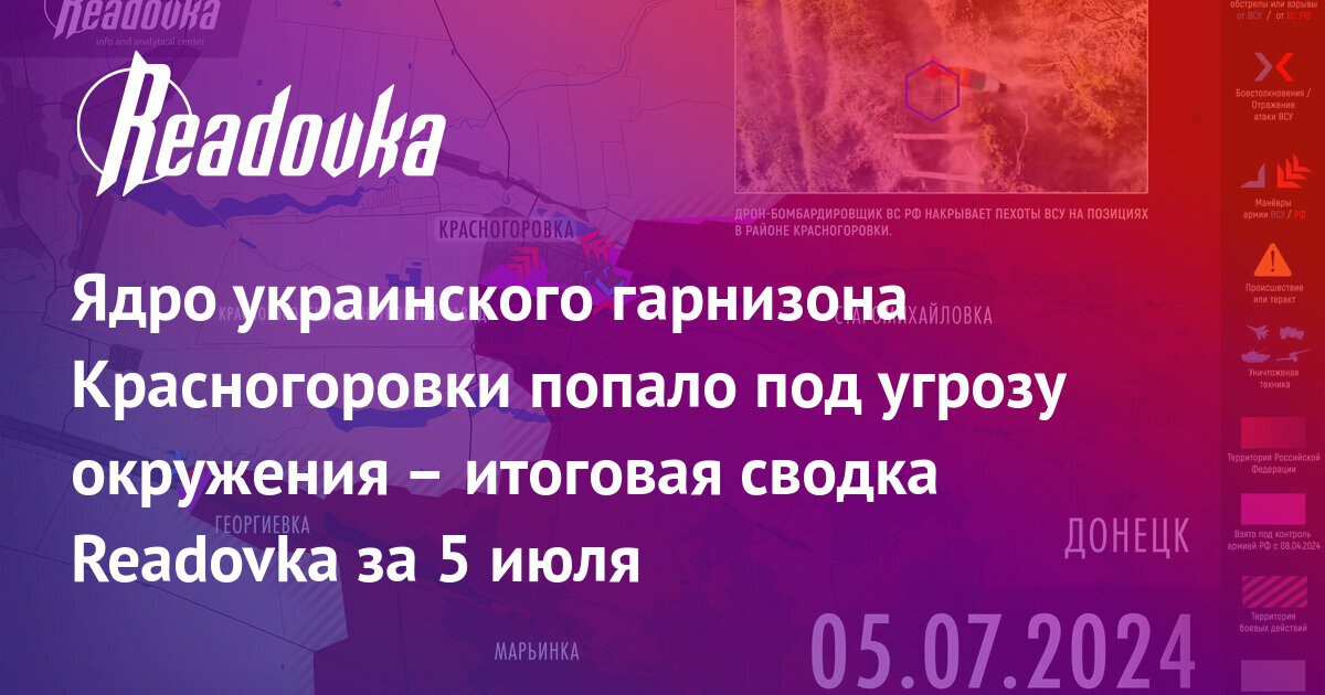 Ядро украинского гарнизона Красногоровки попало под угрозу окружения – итоговая сводка Readovka за 5 июля