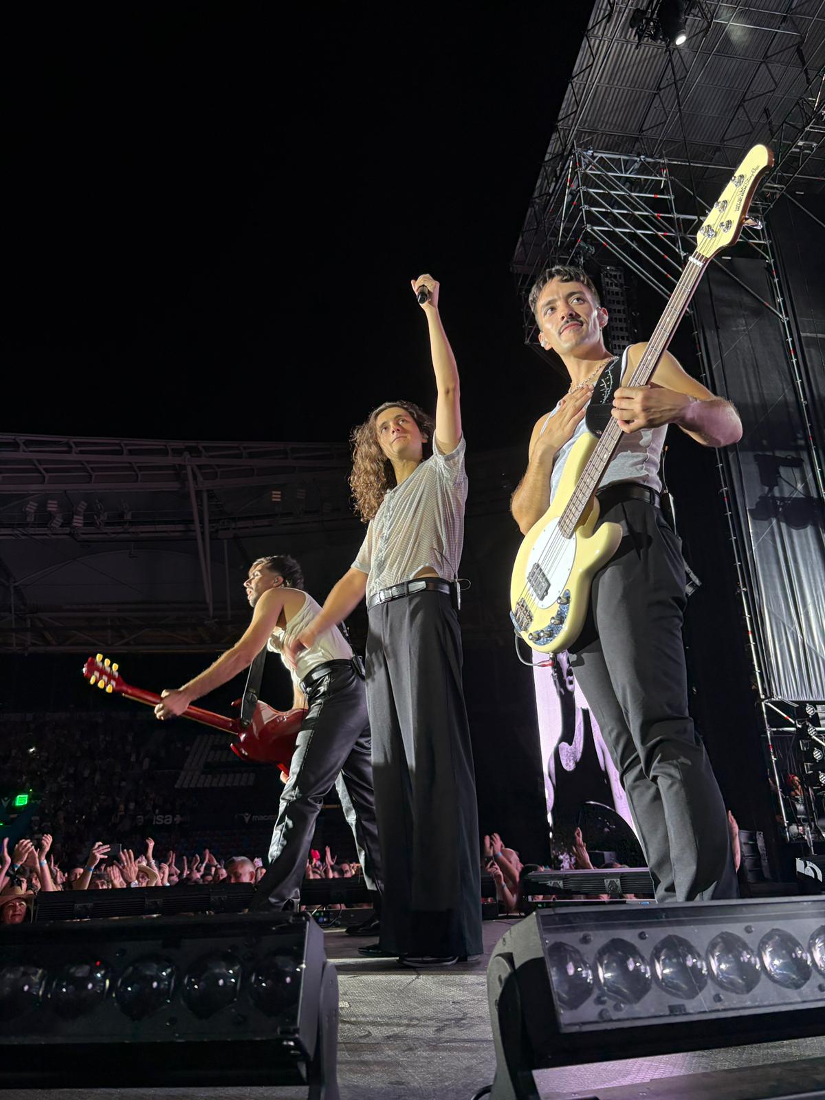 No deja de sorprender la carrera meteorítica de Arde Bogotá con un EP y dos álbumes. Y como su rock de viejo cuño, que bebe de Héroes del Silencio, los Doors, pero también de Muse o Kings of Leon, atrapa transversalmente a veinteañeros, a millenials, gente de la generación Z o boomers. No han inventado la pólvora pero su éxito confirma el poderío del rock. Como cabeza visible, un líder indiscutible como Antonio García que transmite magia, atrapa, cautiva. Tiene atractivo, sabe moverse, canta con personalidad y potencia, impactando. Miro un mensaje en las gradas del estadio y me suena reveladora, «Mai ens rendirem», «nunca nos rendiremos», como si fuera idóneo para la ocasión que refleja la energía, la catarsis a la que nos transporta Arde Bogotá,